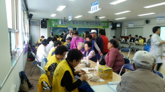 | 김천시(시장 박보생)에서는 시민 곁으로 한발 더 다가가는 행정서비스를 제공하기 위해 실시하는 찾아가는 현장민원실이 지역주민들의 큰 관심과 참여 속에 5월 11일 부항면에서 진행됐다.