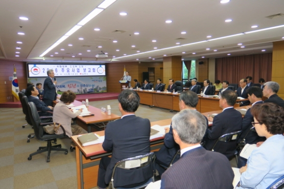 이날 보고회에서는 김천혁신도시의 성공적인 정착과 신규산업단지 개발, 지역개발, 관광과 농축산업 육성 등 추진중이거나 계획된 주요 현안사업 35건 대한 정부와 경상북도의 지원을 건의하였고, 2017년 국도비 지원요청과 사업추진을 위한 협력방안에 대한 다양한 의견교환이 있었다.