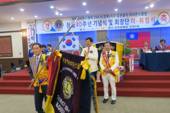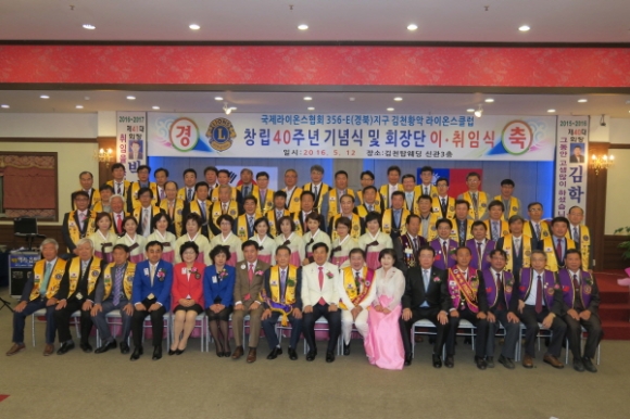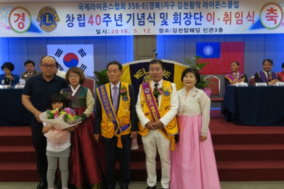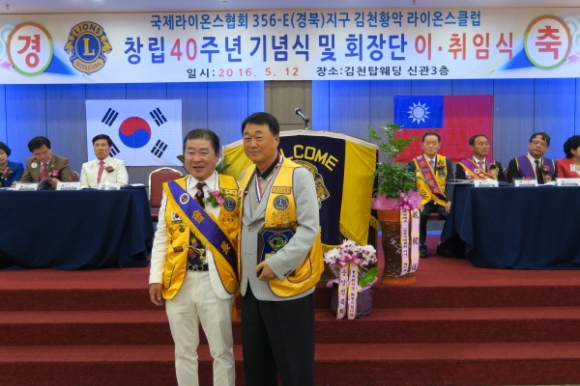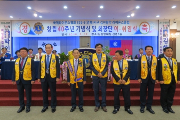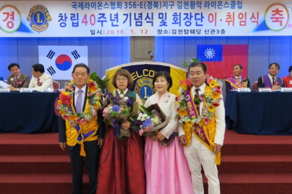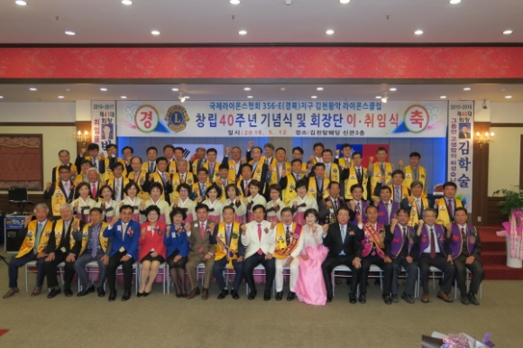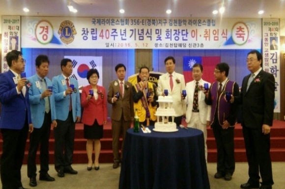|  | | | ⓒ 김천내일신문 | | 국제라이온스협회356-E지구 김천황악라이온스 클럽(회장 박인발)은 지난5월12일 탑웨딩훌에서 회원 및 가족들이 참석한 가운데 창립 제40주년 기념식 및 회장단 이,취임식을 가졌다.