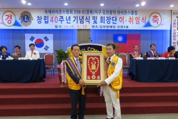 이날 취임식자리에는 이철우국회의원, 박보생시장, 김용대 자유총연맹 김천시지부장을 비롯한 대만라이온스,성주, 구미 등 지역 라이온들이 참석했다. 제40대 김학술회장의 이임식과 제41대 신임 박인발회장 취임식을 가졌다.