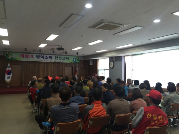 | 김천시는 지난 5월 13일 감염병 없는 건강한 여름나기를 위해 읍‧면․동 방역담당자 및 방역요원 등 70여명이 참석한 가운데 보건소 3층 회의실에서 하절기 방역소독 안전교육을 실시했다. 이번 방역소독 교육은 친환경 방역 효과를 높이기 위해 국내 주요 질병매개모기의 특징과 생활사, 모기방제방법, 방역장비 수리와 장비 사용법 등 방역 전반에 대한 전문교육이 이루어졌다.