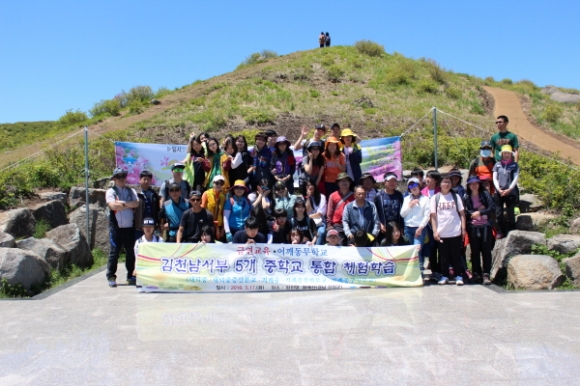|  | | | ⓒ 김천내일신문 | | 김천시 김천남서부중학교 5개면에 소재하는 대덕중, 대덕중증산분교, 지례중, 지례중 부항분교, 지례중 구성분교 및 김천상고는 전교생을 대상으로 지난 5월 17일 금연교육, 학교폭력예방을 위한 어깨동무학교 일환으로 사제동행으로 황매산(경남 산청군) 산행을 겸한 통합 체험학습을 실시하였다.