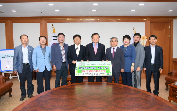 5월 26일 2층 접견실에서 김상규 지좌동 단체협의회 회장, 김기옥 지좌동 지역사회보장협의체 위원장은 “혁신도시의 성공적인 건설과 김천시가 살기 좋은 도시로 발돋움하기 위해서는 우수한 인재가 많이 필요하며, 우수한 인재들이 우리 지역출신이면 더욱 발전에 도움이 될 것 같아 각 1백만원씩 2백만원을 기탁하게 됐다.”고 말했다.