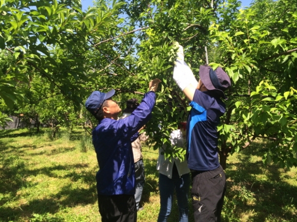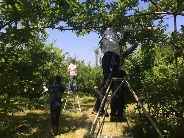 손영복씨는 “일할 사람이 부족해 과실이 자라는데 지장을 줄 형편이었는데선뜻 달려와 준 직원들에게 고맙다”고 말했다.