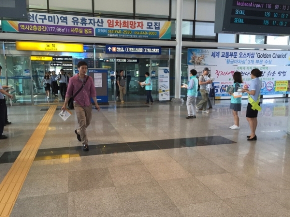 | 교통안전공단 철도교통안전처(처장 엄득종)과 코레일 김천구미역(역장 송대헌)은 5월 31일 KTX 김천구미역에서 합동 철도교통안전캠페인을 시행했다.
