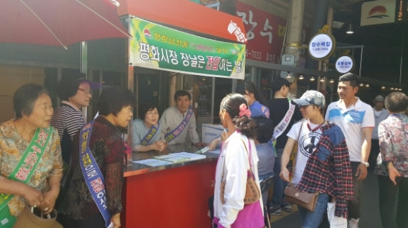 | 평화남산동에서는 5월 30일 오전 10시부터 16까지 평화시장 장날을 이용하여 전통시장을 찾는 시민들에게 김천시 15만 인구 회복을 위한 전입 홍보 캠페인 및 현장 전입신고의 날을 운영하였다.