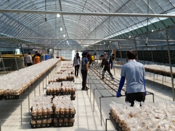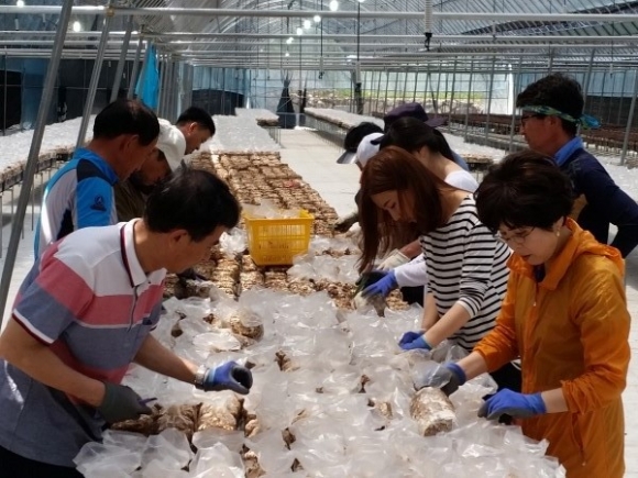 표고버섯 톱밥배지 6,500개을 옮기고 비닐포장지를 해체하는 단순한 작업이었지만 모두가 열심히 작업에 임하였고 바쁜 시기에 도와주셔서 크게 도움이 되었다며 함박웃음을 짓는 농장주인의 감사말씀은 피곤함을 잊게 했다.