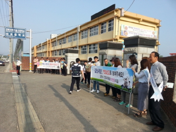| 김천시 아포읍(읍장 김병진)은 지난 6월 1일 아포역사거리 및 아포경북과학기술고 앞에서 구미에서 김천으로 출퇴근하는 시민들 및 통학하는 학생들을 대상으로 15만 인구회복을 위한 전입홍보 캠페인을 전개하였다.