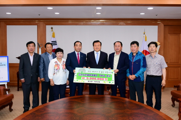 6월 3일 2층 접견실에서 백종환 체육회장, 정문화 이장협의회장, 박희왕·이남수 새마을남녀협의회장과 회원들은 “김천시가 살기 좋은 도시로 발돋움하기 위해서는 우수한 인재가 필요하며, 그 우수한 인재들이 우리 지역 출신이면 더욱더 지역 발전에 도움이 될 것 같아 각 단체 회원들의 마음을 모아 4백만원을 기탁하게 됐다.”고 말했다.