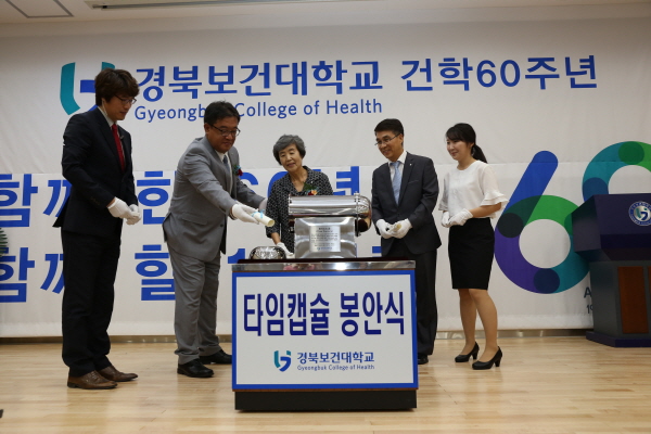 기념식은 개회선언, 1956년 김천간호고등기술학교를 시작으로 현재까지의 발전사에 대한 학사보고, 기념사, 치사, 축사, 감사패, 장기근속패, 자랑스러운 경북보건대학인상 수여, 총동창회 발전기금 전달식, 타임캡슐봉안식, 교가제창 순으로 진행됐다.