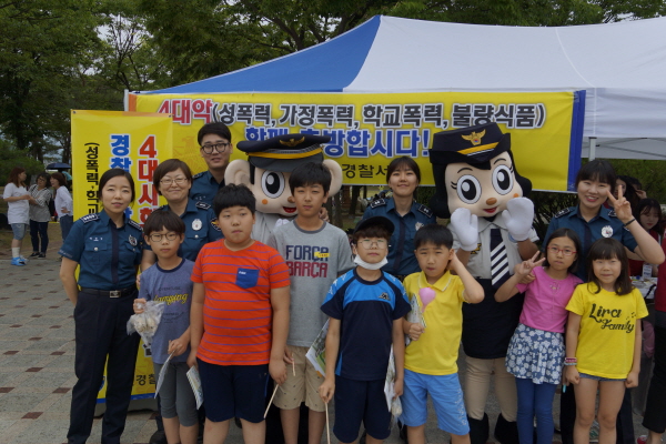 | 김천경찰서(이창록)에서는 6월 4일(토) 강변공원에서 개최된 YMCA주최 환경한마당 그림그리기 및 글짓기 대회 현장을 방문, 4대 사회악 근절 홍보활동을 펼쳤다.