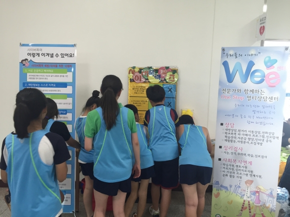 | 경상북도김천교육지원청(교육장 장태덕) Wee센터는 6월 10일(금) 제30회 교육장기 육상대회와 겸하여 “사이버폭력 및 학업중단 예방을 위한 Wee센터 이동상담 부스”를 운영하였다.