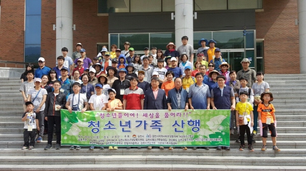 「청소년 가족 산행」은 김천시가 주최하고 김천시지역사회보장협의체 여성청소년분과에서 주관하였으며, “청소년들이여! 세상을 품어라!!”라는 주제로 청소년과 부모 25가정과 자원봉사자 등 100여명이 참여를 하였다.