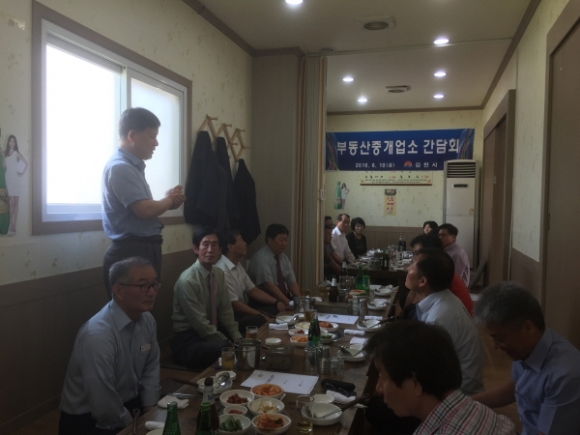 | 김천시는 지난 6월 10일 아포읍에서 부동산 거래질서 확립을 위하여 읍·면지역 부동산 중개업소대표를 대상으로 간담회를 개최하였다.