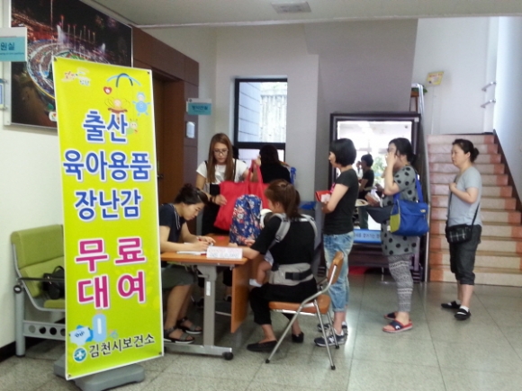 | 김천시(시장 박보생)는 출산장려 분위기 확산과 육아에 따른 실질적인 도움을 주기 위하여 출산 및 육아가정에 대하여 다양한 출산육아용품 및 장난감을 무료로 대여하여 큰 호응을 얻고 있으며 특히 산모 유축기는 임산부들에게 대여신청이 많아 사전예약제로 운영하고 있다.