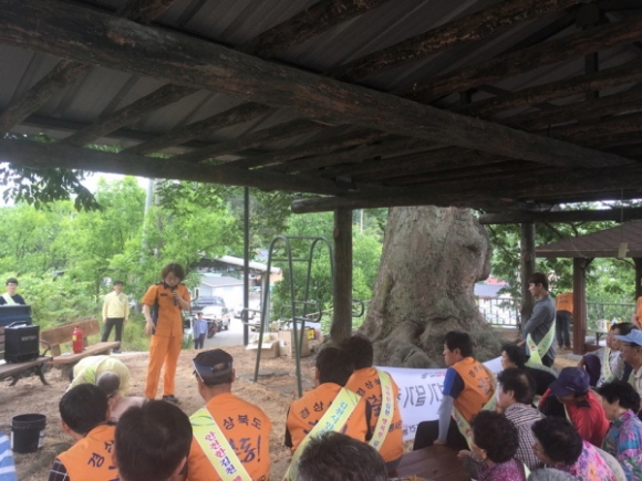 | 김천시(시장 박보생)는 6월 13일 대항면 향천3리에서 김천소방서, 출동 무조건 재난지킴이 봉사단원들과 함께 농촌지역의 생활안전을 담보하기 위하여 85가구에 화재경보기 달아주기 캠페인을 전개했다.