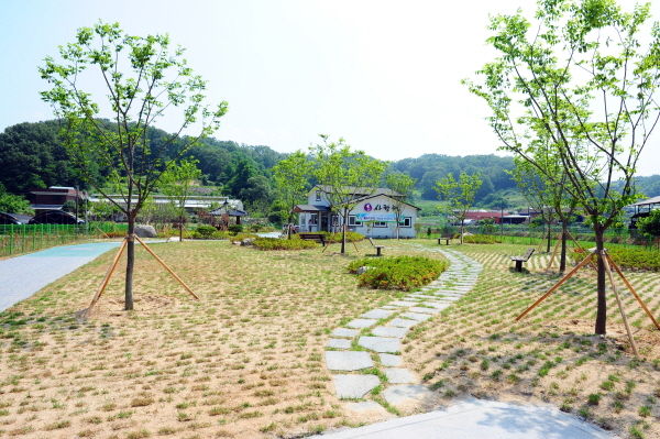 | 김천시는 지난해 산림청 녹색사업단의 녹색자금(복권기금) 지원 공모사업에 선정된 하로고개길(양천동) 173번지 한사랑채에 장애여성과 지역주민의 심신안정과 휴양증진의 장소가 될 수 있도록 복지시설 나눔숲을 조성하였다.