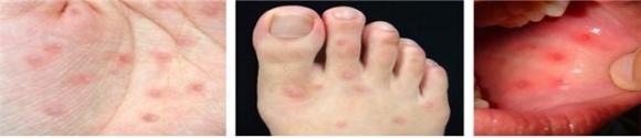 | [손, 발, 입안의 수포성 발진 사례] 이에 보건소 관계자는 수족구병이 의심될 경우는 신속하게 의료기관의 진료를 받아야하며, 확산을 방지하기 위하여 감염기간(발병 후 1주일)에는 다른 사람과의 접촉을 최소화하여야 한다고 권고하였으며, 고열, 구토 등이 48시간이상 나타나거나 팔다리에 힘이 없거나 걸을 때 비틀거리는 등의 증상이 나타나면 신속히 종합병원을 방문하여 정밀검사를 받아야 한다고 말했다.