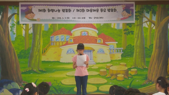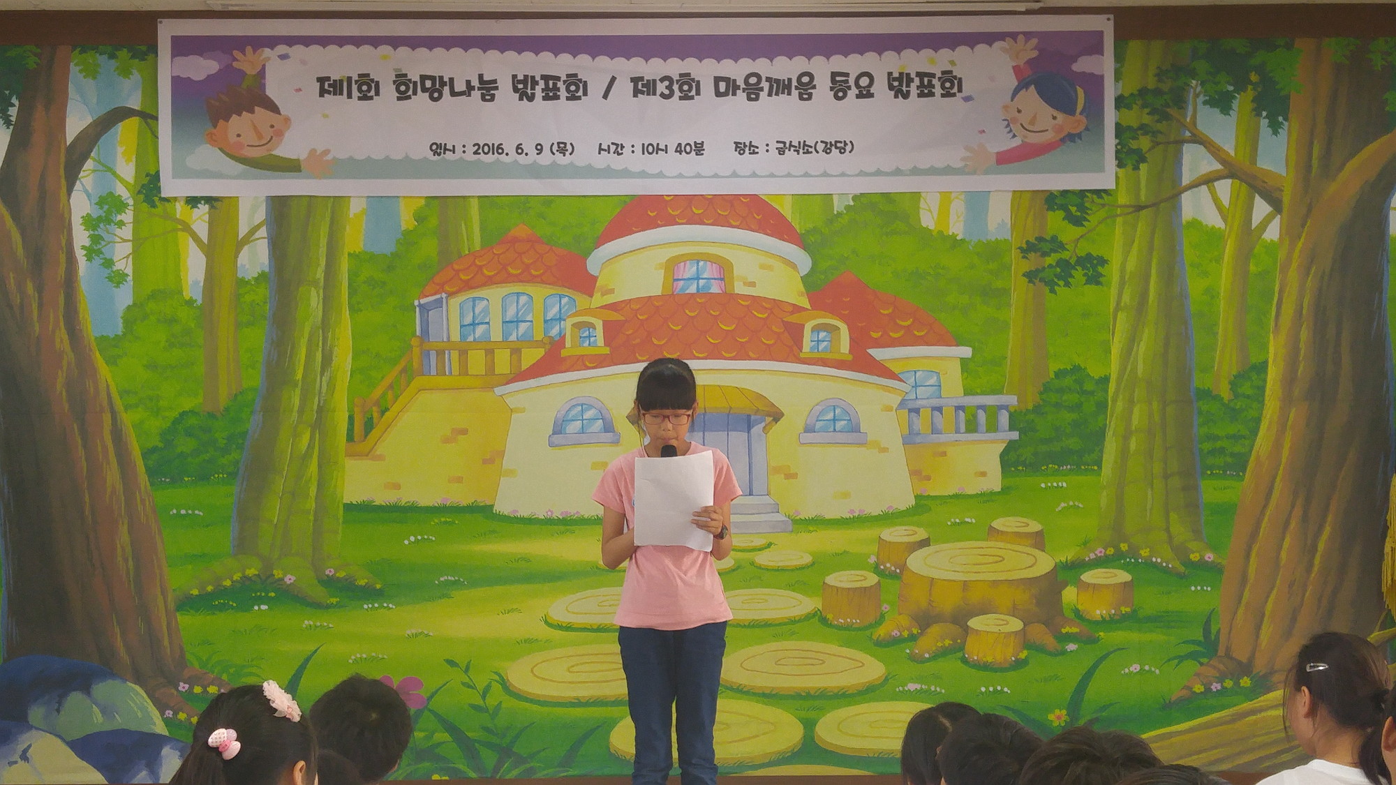 | 대룡초등학교(교장 이미영)는 6월 9일(목) 강당에서 전교생을 대상으로 제1회 희망나눔 발표회를 개최하였다.