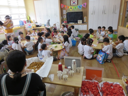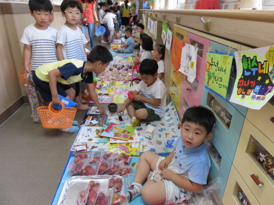 중앙초등 병설유치원 아나바다 알뜰시장이 열렸어요.