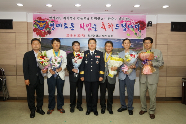 김천경찰서(서장 이창록)에서는 6월 30일(목) 2층 회의실에서 소속 경찰관 6명의 퇴임식을 가졌다.