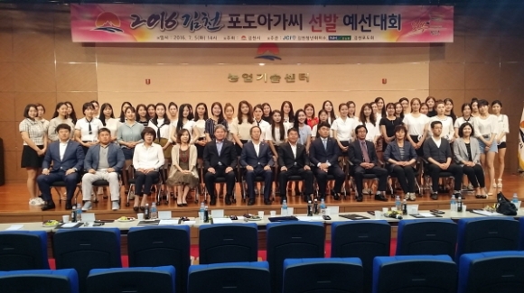 | 김천시(시장 박보생)는 2016년 김천포도아가씨 선발 예선대회는 7월 5일 농업기술센터(교육관)에서 개최하여 오는 7월 19일 본선진출자 17명(별첨)이 최종 확정되었다. 포도아가씨 선발대회는 지난 1996년부터 시행되어 올해로 12회째 맞고 있으며, 1998년대회부터 격년제로 시행하고 있으며 2014년도에 이어 금년에도 신청자가 63명으로 예선대회가 뜨거웠다.