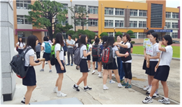 특히 7월 8일 등굣길에는 여선생님들과 허그 및 남선생님들과의 하이파이브를 통하여, 사제간의 마음을 표현하고 교감하는 좋은 기회를 가졌다. 또한 학생들 스스로 참여하여 학교폭력예방을 위한 피켓 캠페인도 벌였다. 등굣길에 행사에 참여한 3학년 김○○ 학생은 “아침부터 교문에서 학생들을 포옹하고, 하이파이브로 맞이해 주시는 선생님들의 모습에 정말 기분이 좋았어요. 우리도 선생님들을 수업시간에 반갑게 반겨드리고 말씀을 잘 들어야겠다고 생각했어요” 라고 말했다.