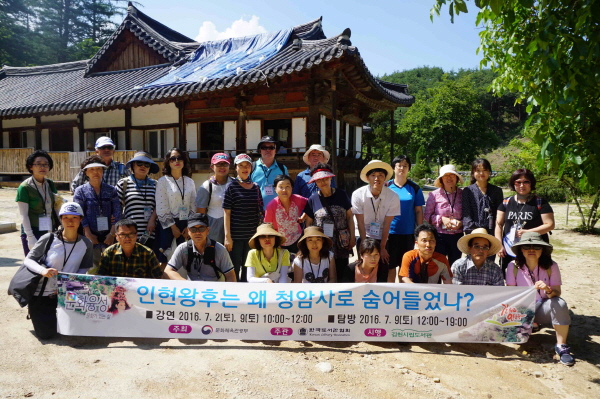 송기동 사무국장은 강연과 현장탐방을 통해 김천지역에 남아있는 향교, 서원, 서당, 정려각과 유교문화와의 관계 그리고 우리지역의 대표 사찰인 청암사, 수도암과 인현왕후와의 인연 등을 이야기하며 김천지역의 유교와 불교 문화유적이 조선시대 역사의 중요한 현장이었음을 강조하였다.