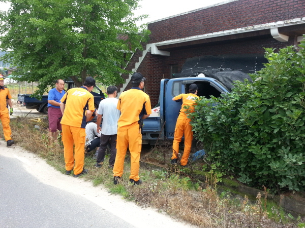 김천소방서 출동대가 사고현장에 도착한바, 1톤 트럭이 도로 옆 주택에 추돌한 상황으로 유압 전개기 및 절단기 등을 활용하여 운전자 김모씨(남,49세)를 안전하게 구조하였으며, 현장에서 응급처치를 실시 후 복귀하였다. |