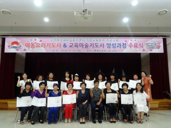 | 김천시 평생교육원(원장:김금숙)내 여성새로일하기센터에서는 7월 12일 (화) 아동요리지도사·교육마술지도사 양성과정 수료식을 시행하였다.