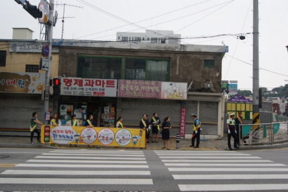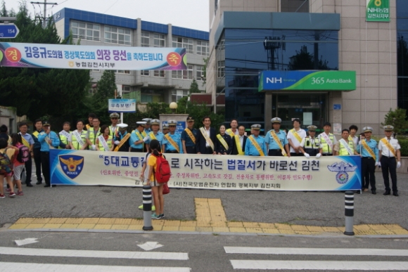 | 김천경찰서(서장 이창록)에서는, 7월 19일 김천 중앙초등학교 정문에서 경찰과 유관기관인 김천시청, 김천교육지원청을 비롯하여 모범운전자회, 녹색 어머니회, 중앙초등학교 교사 등 60여명이 참석한 가운데 어린이 교통안전을 위한 합동 캠페인을 실시하였다.