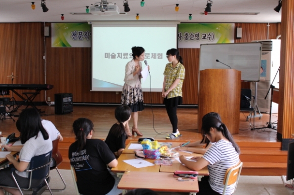 | 대덕중학교는 지난 7월 18일 미술심리치료사 홍순영 대구대학교 평생교육원교수를 모시고 전교생 및 교직원을 대상으로 「2016년 전문직업인 초청 진로특강」을 개최하였다.