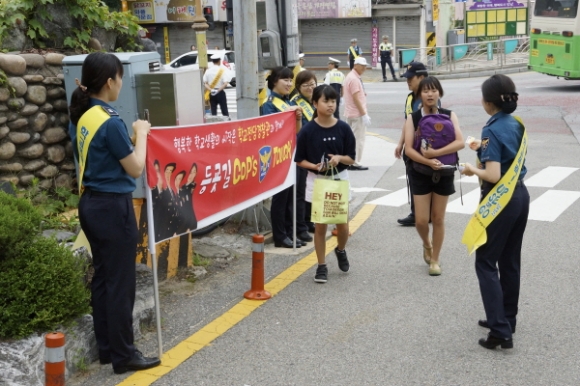 | 김천경찰서(서장 이창록)에서는 7월 22일(금) 07:50경 김천시 남산동 소재 중앙초등학교 등굣길에서 학교폭력 예방 캠페인을 펼쳤다.