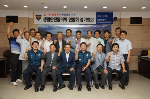 | 김천경찰서(서장 이창록)에서는 지난 7월 21일 경찰서 열린방에서 생활안전협의회원들이 참석한 가운데 민·경 협업치안 활성화를 위한 정기회의 및 범인신고자에 대해 감사장 및 포상금을 수여하였다.
