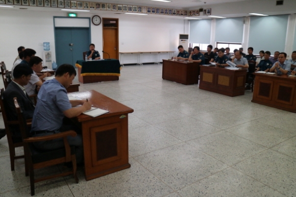 | 김천경찰서(서장 이창록)에서는 8월 11일(목) 오전 9시 이창록 경찰서장 주재로 경찰서 대청마루에서 각 과․계장, 을지연습 참가자 등 60여명이 참석한 가운데 2016년 을지연습 준비 보고회의를 개최했다.