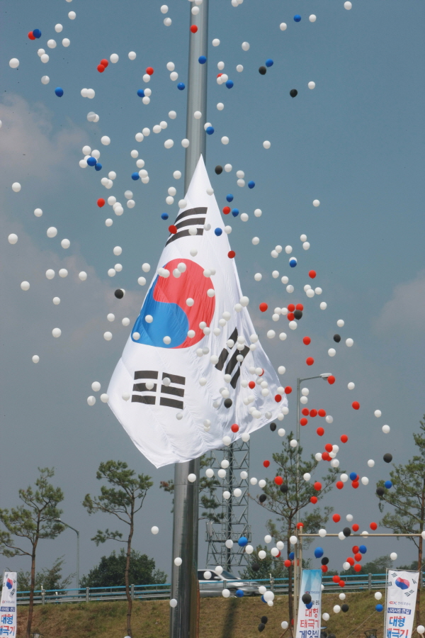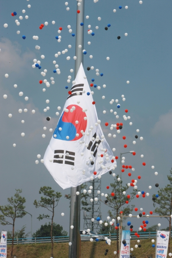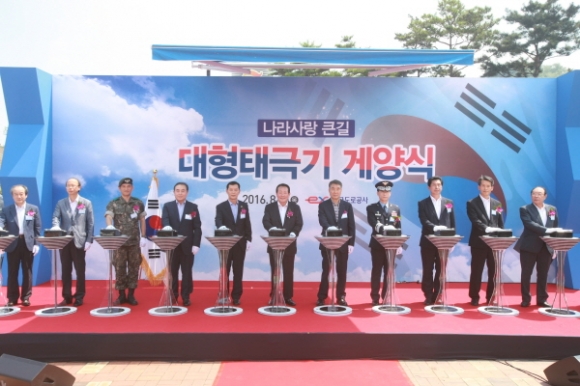 한국도로공사(사장 김학송)는 광복 71주년을 맞아 경남지역 거점도시 고속도로 관문 두 곳(동창원IC, 진주(부산)휴게소)에 높이 50m의 게양대에 가로 12m, 세로 8m 크기의 대형 태극기를 게양했다.
