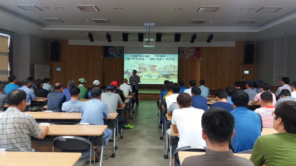 이번 안전교육은 한국산업안전보건공단 이종배 강사를 초빙하여 실시하였으며 환경미화원의 복무규정 숙지, 안전수칙 준수 등 작업 특성상 안전사고 노출이 많은 이들의 안전사고를 미연에 방지하고자 실시했다.