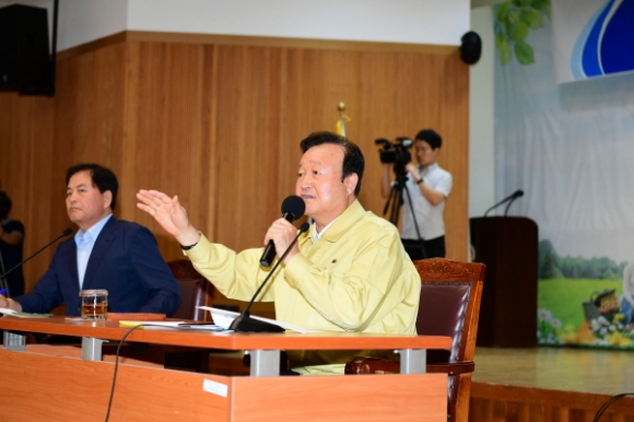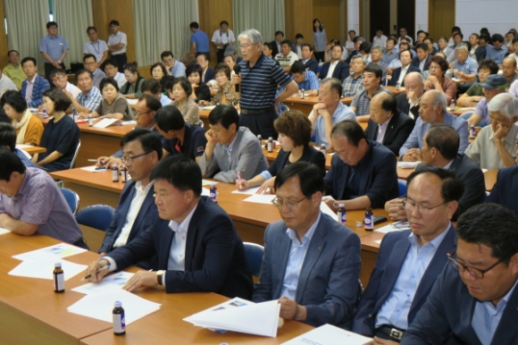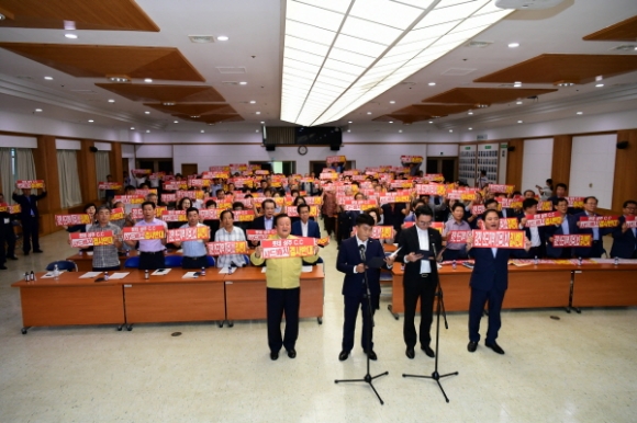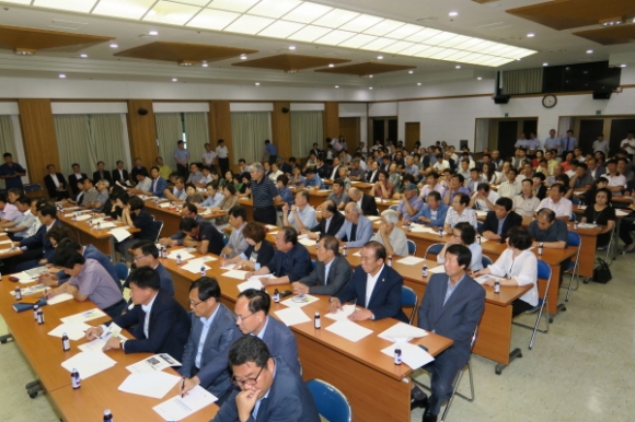 | 김천시(시장 박보생)는 8월 19일 오후3시 김천시청 3층회의실에서 김천시 기관․단체장 150여명이 참석한 가운데 사대배치 제3의 후보지 논란에 따른 긴급회의를 개최하였다.