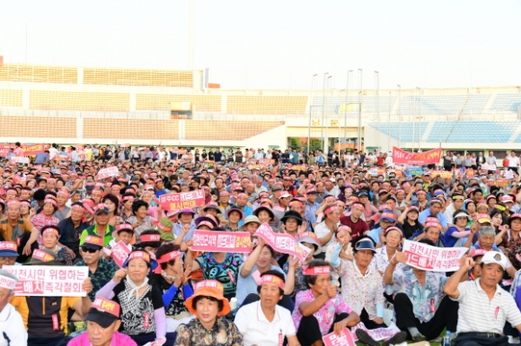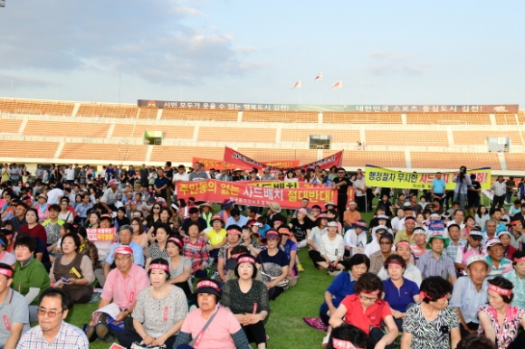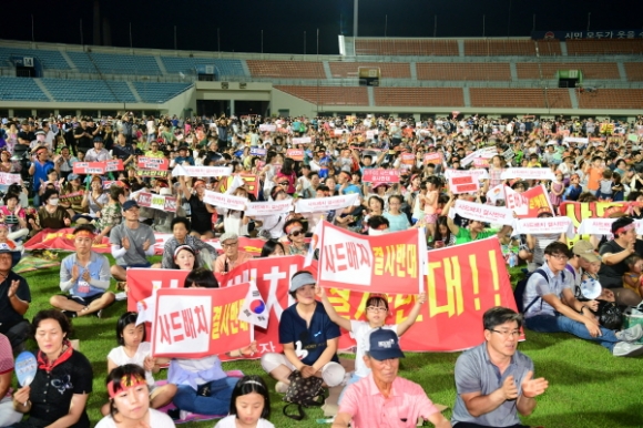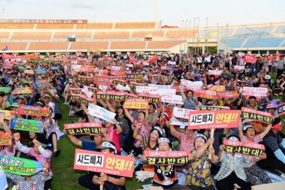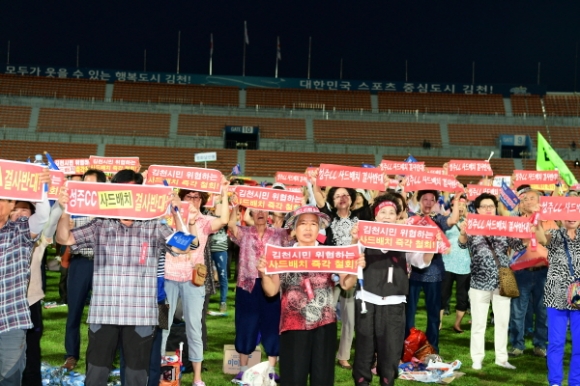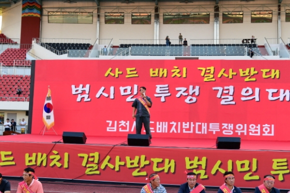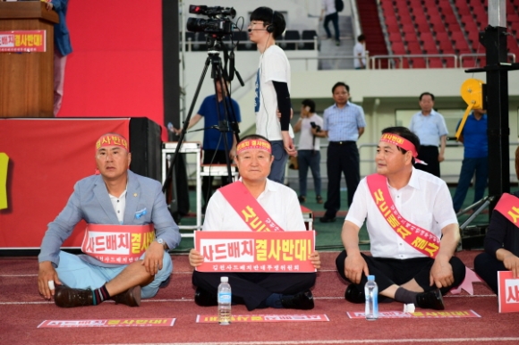 -김천시민 일만명 궐기대회 통해 사드배치 반대표명 -김천시장 삭발로 의지보여