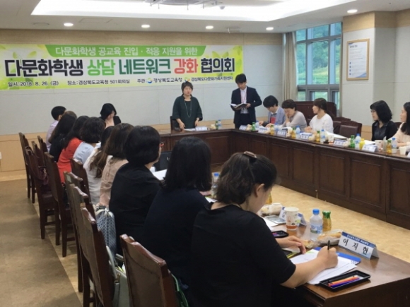| 경상북도교육청(교육감 이영우)은 8월 26일 경북다문화가족지원센터와 교육지원청 Wee센터 담당자 등 30여명이 참석한 가운데‘다문화학생 상담 네트워크 강화 협의회’를 가졌다.