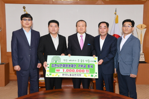 | 김천의 교육발전과 글로벌 인재육성을 위해 한국노총김천지부(의장 정갑성)에서 김천시인재양성재단에 장학기금 일백만원을 기탁했다.