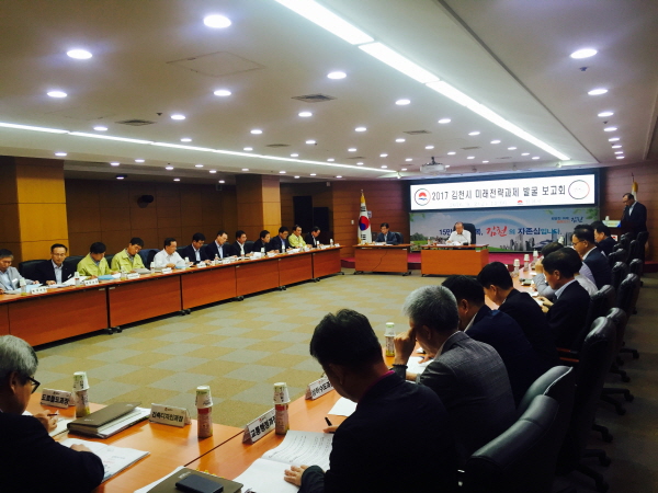 | 김천시(시장 박보생)는 2일(금), 시청 2층 회의실에서 박보생 김천시장 주재로 부시장, 국소장 및 실과소장이 참석한 가운데 “2017년 김천시 미래전략과제 발굴 보고회”를 가졌다.