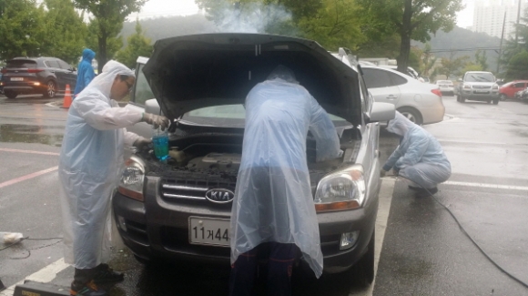 타이어 공기압 점검, 워셔액 보충, 노후 와이퍼 교체, 실내 연막살균 등의사항은 현장에서 바로 조치해 주었고, 정밀 점검이 필요한 차량은 점검 내용을 발부해 정비를 받도록 안내하였다.