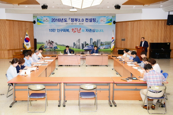 | 김천시(시장 박보생)는 9월 6일(화) 오후 2시부터 시청 3층 강당에서 정부3.0의 효율적인 추진과 국민 맞춤형 서비스를 제공하기 위해 2016년도「정부3.0」현장 컨설팅을 실시했다.