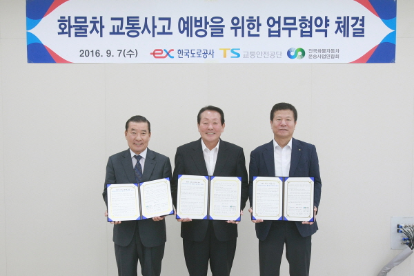 |  | | | ⓒ 김천내일신문 | | 한국도로공사(사장 김학송)는 9월7일 김천시 소재 한국도로공사 본사에서 교통안전공단(이사장 오영태),전국화물자동차운송사업연합회(회장 신한춘)와 ‘화물차 교통사고 예방을 위한 첨단경고장치 보급 활성화 업무협약(MOU)’을 체결했다고 밝혔다.