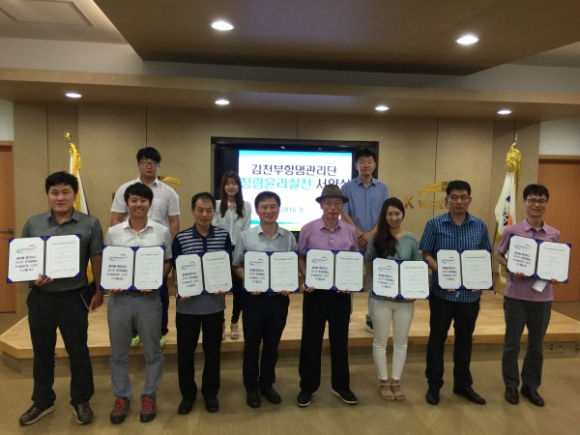 | K-water 김천부항댐관리단은 9월 7일 관리단 상황실에서 전 직원이 참석한 가운데 공정하고 투명한 업무수행으로 국민들로부터 신뢰받는 윤리문화조성에 앞장설 것을 다짐하는 청렴윤리실천 서약식을 개최했다.