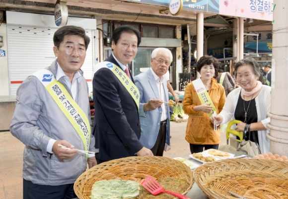 이날 김응규 의장과 의회사무처 직원들은 사전에 구입한 전통시장 온누리 상품권으로 농특산물 및 차례용품을 구입하고 평화시장 방문객을 대상으로 전통시장 이용 및 지역경제 살리기 캠페인을 전개했다.
