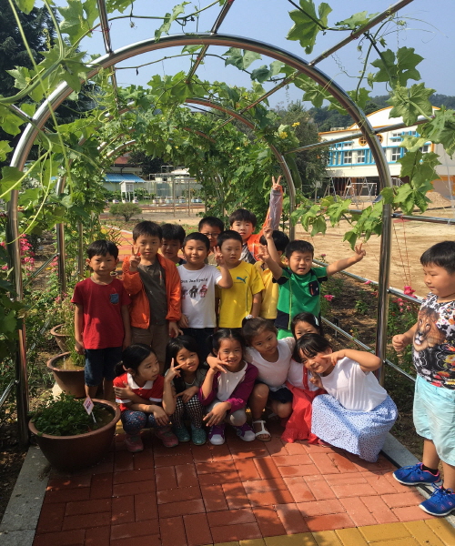 2학기가 시작되면서 교내의 꽃과 나무들이 친구(학생)들의 사랑과 관심으로 아름다운 꽃과 싱싱함을 자랑하고 있어 학교 공동체 모두가 행복감을 만끽 하면서 서로에게 고마워하고 있다. 280여명의 유치원 어린이들과 초등학생들이 시간이 나는 대로 명찰이 달려있는 자기의 꽃과 나무로 달려가서 인사하고 물주기를 하면서 보살펴주면서 모습이 정말 아름답다.