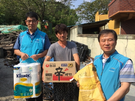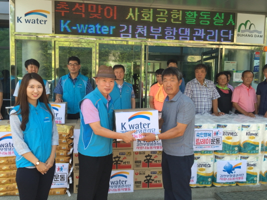 김천부항댐관리단 직원들은 자칫 풍요로워야 할 명절에 소외될 수 있는 이들에게 쌀과 라면 등 생필품(총 30세대, 약 3백만원 상당)을 전달하였고, 따뜻한 마음을 전달하며 한가위의 즐거움도 함께 하였다.