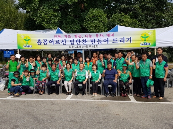 김천시 새마을부녀회(회장 박종말)는 9월 9일 새로 이전한 새마을회관 주차장에서 읍면동 부녀회장 및 협의회장들이 참여한 가운데 추석맞이 홀몸어르신 밑반찬 만들어드리기 행사를 진행했다.